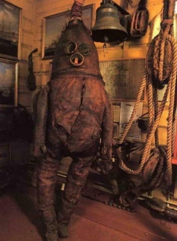 人类恐惧总有相通点!Reddit分享有意思又吓人的照片 人类恐惧的点总有部分是互通的,Reddit有个板块叫“有意思又有点吓人的图”,网友们经常在上面分享一些神奇的照片,让我们一起来看看吧。 现存最古老的潜水服 在18世纪使用