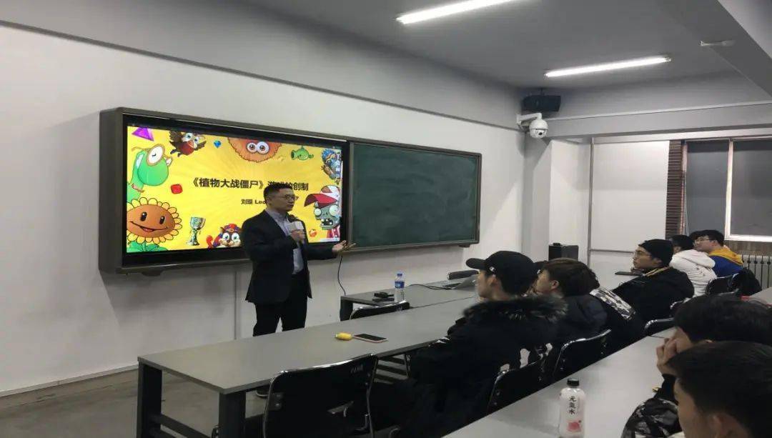邵兵教授好友前EA游戏副总裁Leo课堂讲授 同时在每年3-7月份,和9-12 月份,这两个阶段会做相应的秋招和春招,像腾讯互娱,网易、育碧、虚幻引擎(epic)、SNK中国、完美世界、西山居、莉莉丝、哔哩哔哩游戏,还有盛趣游戏、米哈游、EA、维塔士等头部公司,一方面来做讲座,一方面来做招聘,这已经形成了长效的机制,大约已经运行了快十几年了,这也是值得骄傲的地方,因为我们地处东北,这些头部游戏企业大老远都来学院进行招聘,这也是对我们教学的肯定。 今年从5月份开始到现在,已经做了8场的头部游戏企业讲座和招聘会,也为大四学生的实习就业提前做好了铺垫,同时也通过讲座为低年级的学生明确了工作中具体有哪些技术的要求和未来在岗位工作里其他的一些要求,明确目标,一定程度上增加了低年级学生的学习内驱力。 除了刚才说的头部公司制作人专家之外,还有一大部分是学院毕业生,因为有学生从 07、08 年毕业开始就陆续进入到企业,现在也都基本上是各大公司的中流砥柱、骨干员工、他们也会带着项目回到学院做招聘与演讲。比如6月9号,我们就邀请在网易游戏工作的几位毕业生,目前他们已经是各个项目组的主管,来协同 HR 回到学院做招聘与讲座分享。