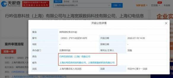 页面显示,原告为行吟信息科技(上海)有限公司,案件将于7月18日在上海市嘉定区人民法院开庭。
