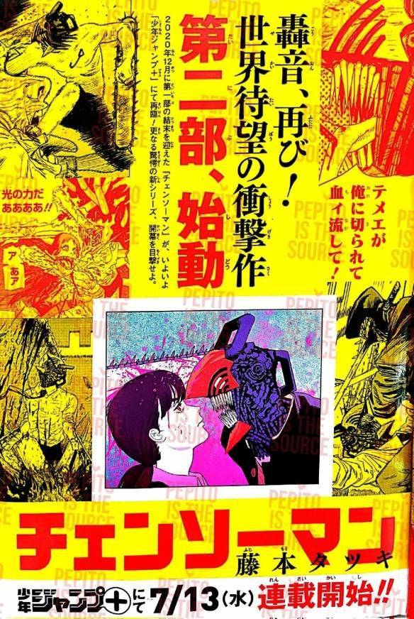 各位病友集合一下《电锯人》第二部连载预告图公开 让不少人“得病”的漫画《电锯人》第一部已经于2020年完结,藤本树和《JUMP》官方也早就宣布该作将推出第二部,今天(7月6日)第二部的连载预告图正式公开。 《电锯人》第二部将于7月13日正式开始连载,不过这次将会在集英社旗下的漫画APP“JUMP+”上连载。新公开的预告图中疑似出现了新的角色,她到底是谁只能等漫画开始连载才能知道了。